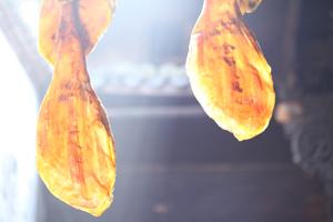 沒(méi)有優(yōu)質(zhì)的豬種,就沒(méi)有優(yōu)質(zhì)的火腿,這是火腿界質(zhì)樸的真理。許多人都把火腿想當(dāng)然地理解為腌臘肉,事實(shí)上,火腿屬于發(fā)酵肉,與葡萄酒、奶酪同屬于發(fā)酵類食品。制作火腿過(guò)程中,除了腌制清洗風(fēng)干程序之外,最重要的過(guò)程是發(fā)酵熟化。 從火腿生產(chǎn)到最終完成,至少需要一年的時(shí)間,如果想得到一支高水準(zhǔn)的火腿,則需要三年的“陳釀”。
