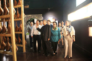 6月28日下午,省人大常委會副主任馮明一行在金華市人大常委會副主任陳志身等的陪同下,參觀考察了建于金字火腿內(nèi)的中國火腿博覽館和世界火腿博覽館,了解金華火腿的行業(yè)發(fā)展現(xiàn)狀。 金字火腿總經(jīng)理吳月肖向馮明一行介紹了金華火腿的歷史文化、傳統(tǒng)制作工藝、營養(yǎng)價值和儲存食用方法。馮明指出,金華火腿雖然是一個傳統(tǒng)行業(yè),但也要跟上形勢,通過各種渠道進行推廣傳播,她特別強調(diào)了互聯(lián)網(wǎng)營銷在當代企業(yè)發(fā)展中的作用,十分關(guān)心企業(yè)在這一方面的發(fā)展……