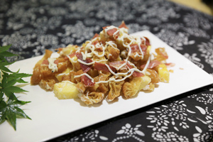 “金字百變火腿”創(chuàng)意秀,遍尋民間家?;鹜炔说膭?chuàng)意做法。征集消息發(fā)出至今,已有不少市民愿意一秀才藝。?在這個(gè)過程中,有專業(yè)大廚,有退休老人,有美女廚娘,也有這個(gè)城市里最普普通通的上班族。不可否認(rèn),大廚、專業(yè)人士們的擺盤、用料更為講究,但其實(shí),很多時(shí)候,帶給我們驚喜的卻反倒是那些看上去普普通通,甚至連名字都是現(xiàn)取的家常菜,夠自然,夠純粹,甚至,還經(jīng)常能從中發(fā)現(xiàn)一些小驚喜?;蛟S,也就是做菜人的這些小心思,成就了我們這些品嘗者味蕾的驚喜,就像這次來應(yīng)征的這桌火腿菜,看著普通,吃到的人,微笑卻無一不由心綻