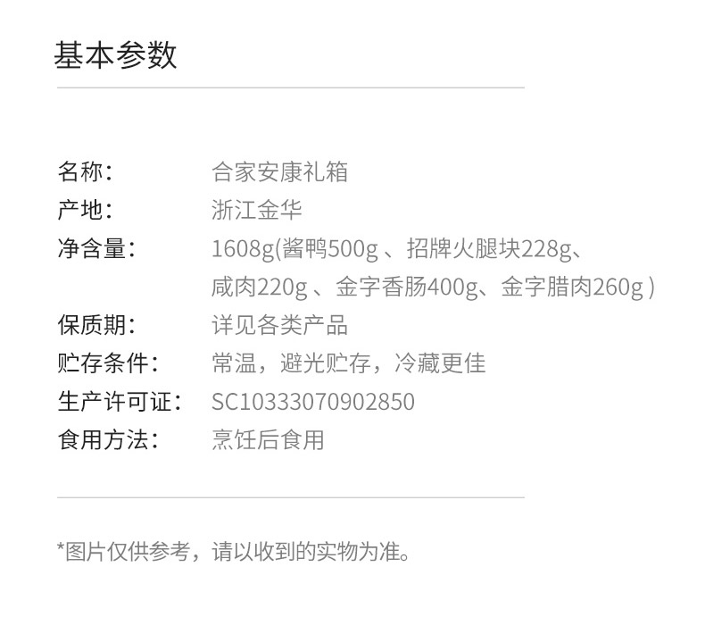 - 豬后腿,食用鹽,食品添加劑(亞硝酸鈉)